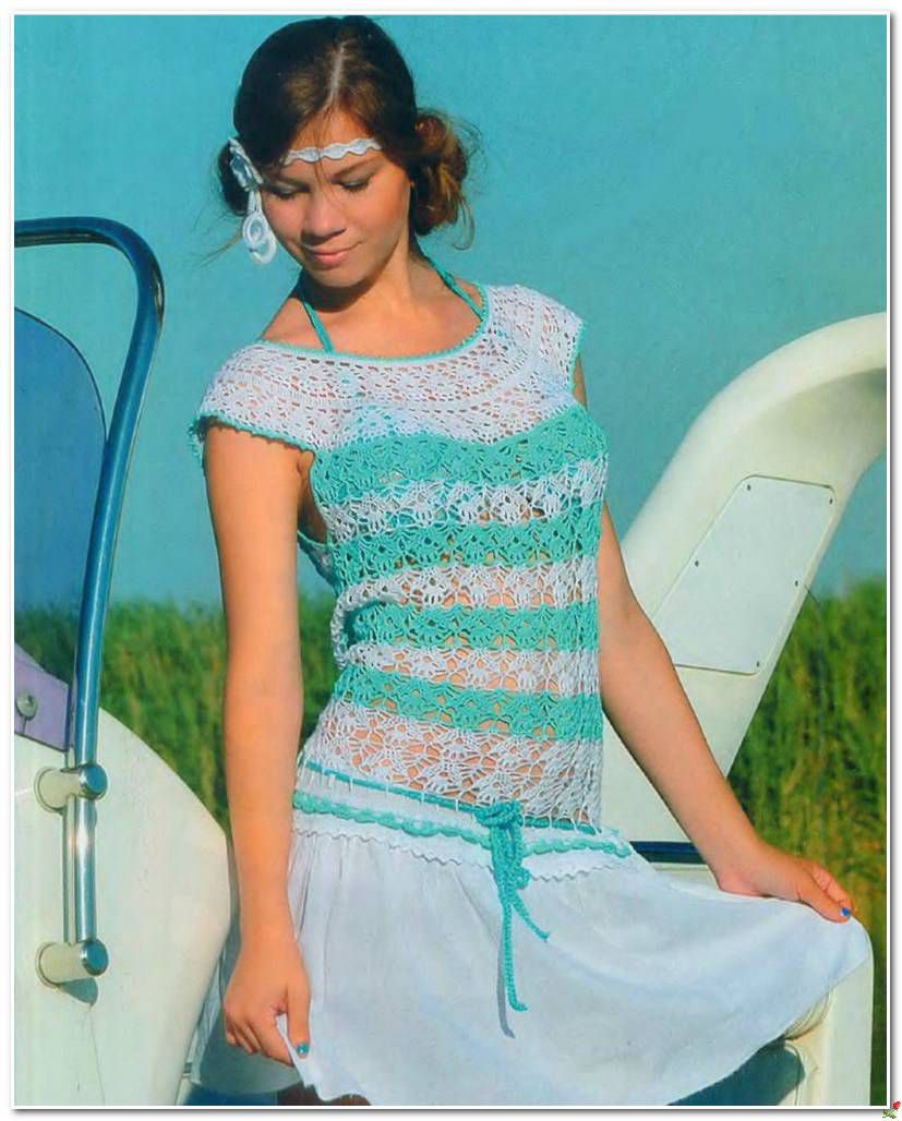 ВЯЖЕМ КРЮЧКОМ ПОЛОСАТЫЙ, АЖУРНЫЙ ТОП.