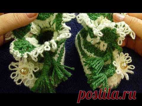 Пинетки теплые для новорожденного малыша, связанные крючком/ Crochet baby's booties. - YouTube