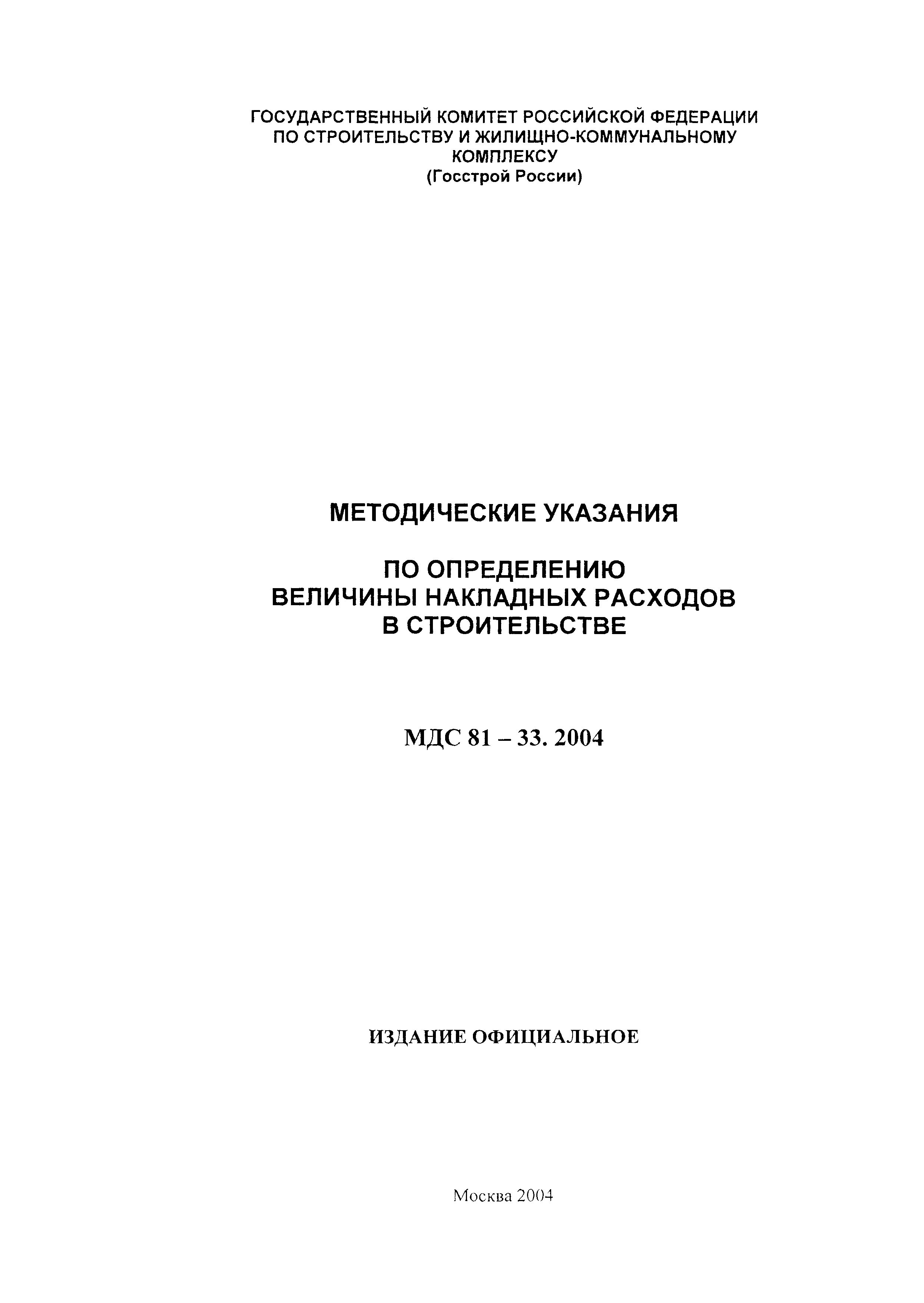 Скачать МДС 81-33.2004 Методические указания по определению величины накладных расходов в строительстве