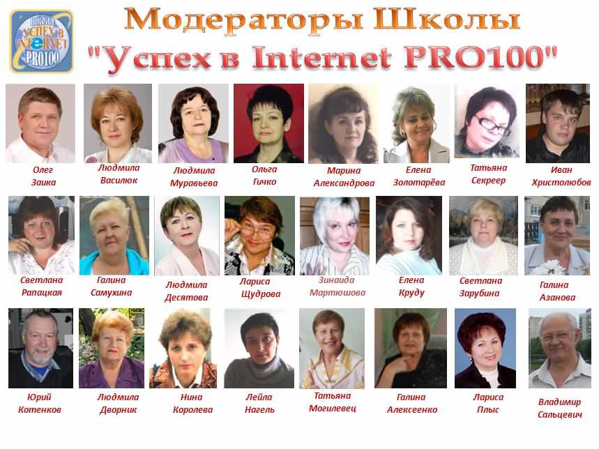 Если Вы хотите подружиться с Интернетом , но не знаете с чего начать , приходите в нашу Школу " Успех в Internet PRO100 " !!! Курс обучения бесплатный !!! Зарегистрироваться можно, кликнув на ссылку http://www.pro100school.com/account/register?r=32435
