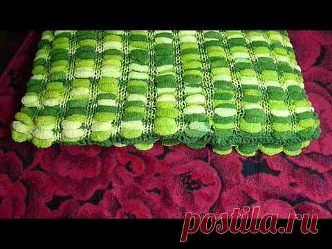 Вяжем из помпонной пряжи.Плед, вязанный спицами.Pom Pom wool knitting - YouTube
