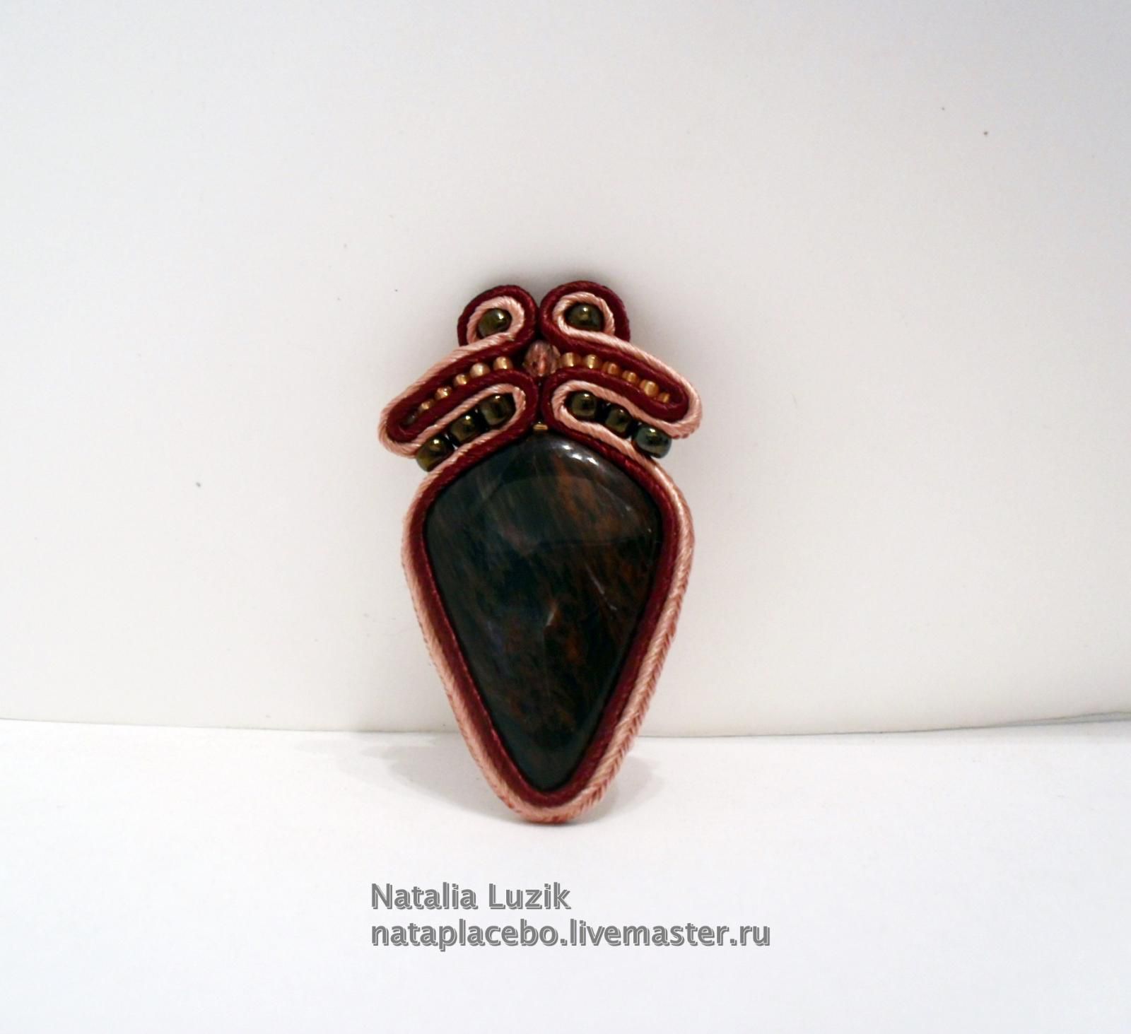 Сутажная брошь с обсидианом | biser.info - всё о бисере и бисерном творчестве