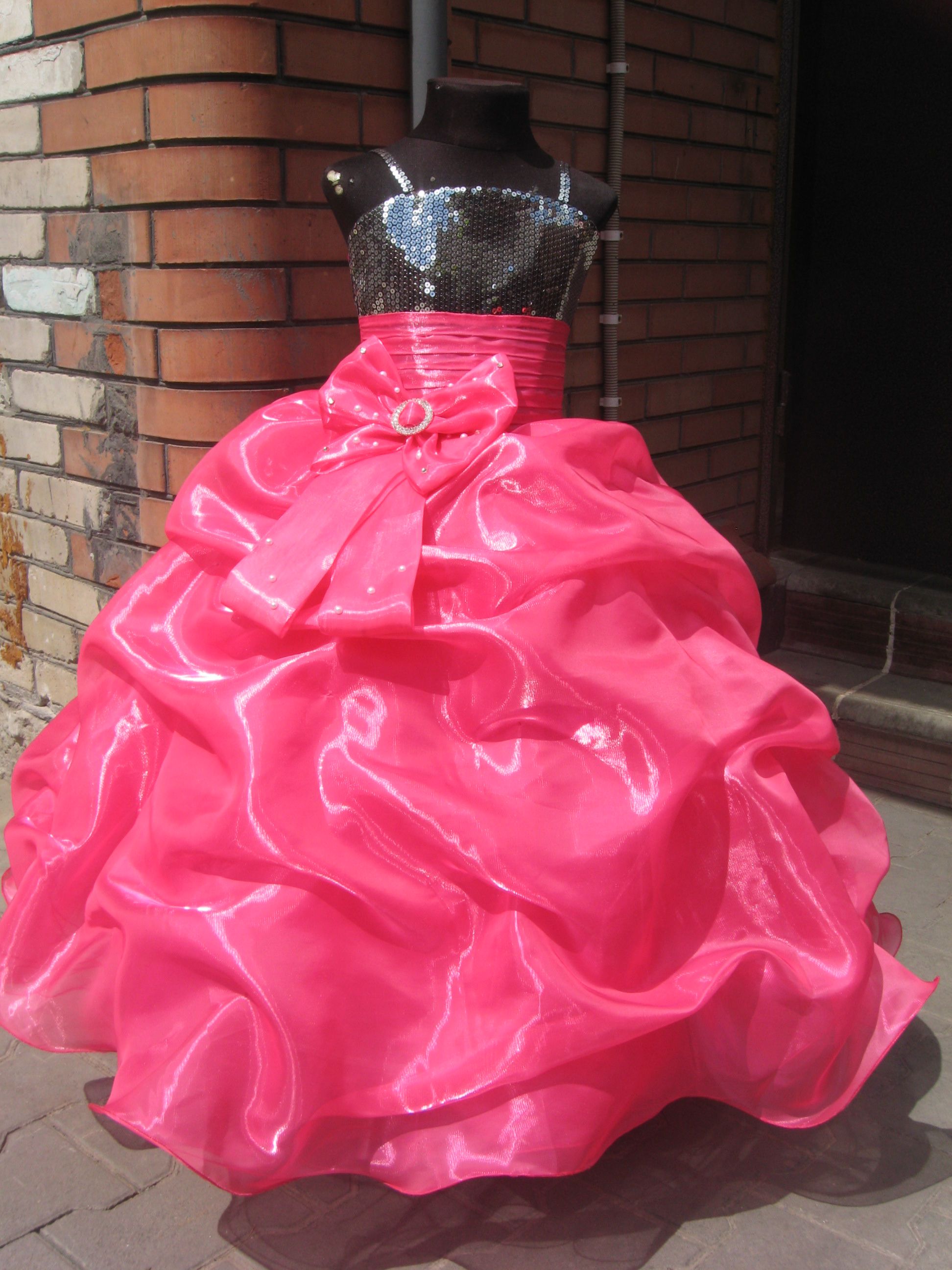детское платье из малинового флама ,очень пышное и корсетом из паеток