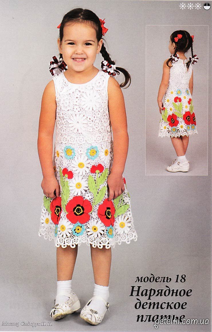 Ирландское кружево. Нарядное детское платье крючком. Описание, схемы, выкройка