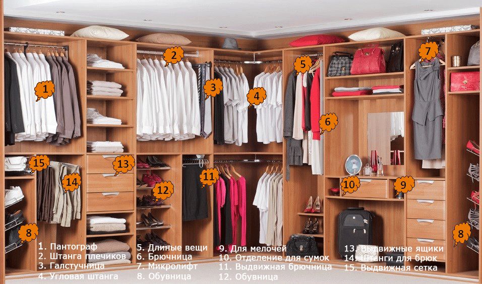 Внутреннее наполнение для шкафов купе. Фото, рекомендации, полезные советы