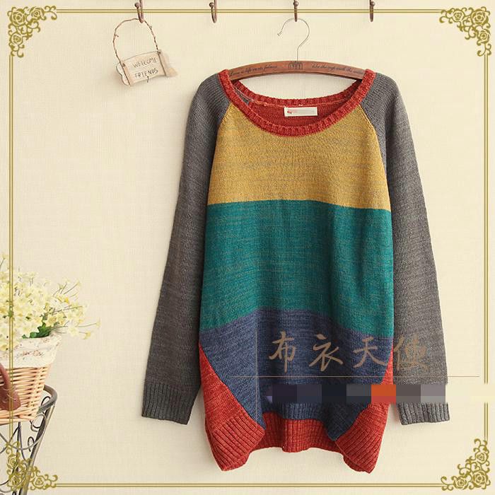 Бесплатная доставка 2014 новый осень мори женщин девушки контрастность цвет лоскутная длинные шерстяные свитера, женский свободного покроя вязать пуловеры, принадлежащий категории Пуловеры и относящийся к Одежда и аксессуары на сайте AliExpress.com | Alibaba Group