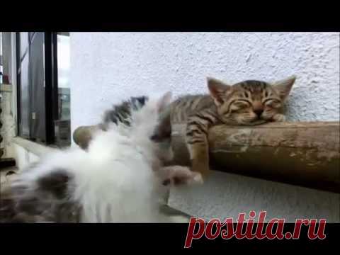 Gato tenta acordar irmão dorminhoco - YouTube