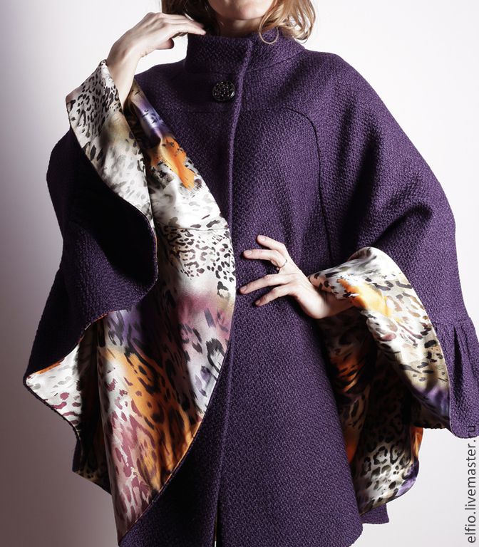 Пальто пончо из буклированной шерсти - тёмно-фиолетовый,однотонный,шанель