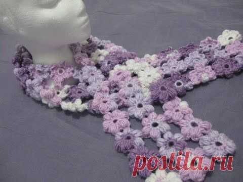 Crochet Puff Stitch Flower Scarf - Left Handed Crochet Tutorial