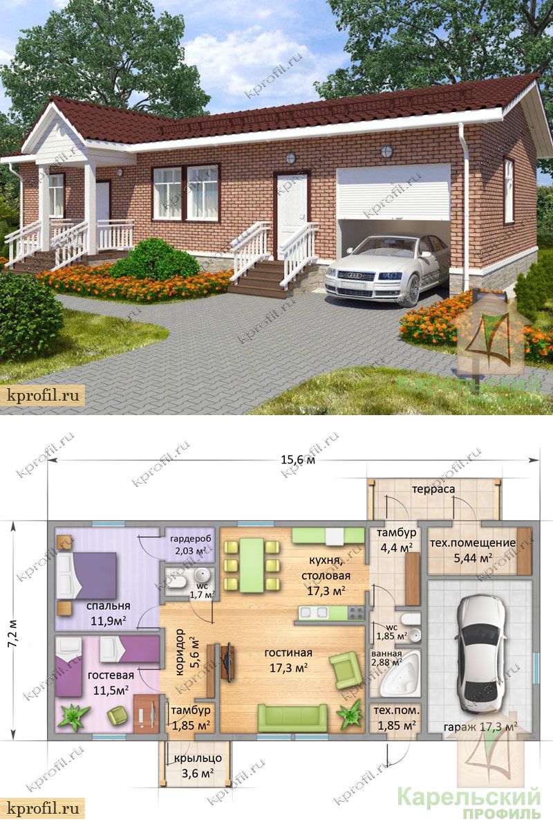 Одноэтажный каркасный дом Нурмес. Финский дом - 114 м2