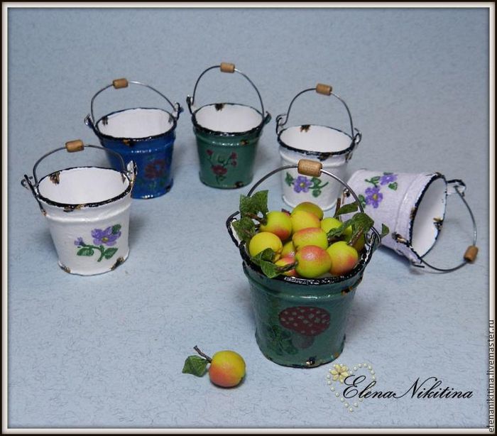 Эмалированное ведерко и кувшинчики из картона для миниатюры