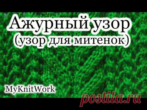 Вязание спицами. Ажурный узор № 9. Узор для митенок. Уроки для начинающих.