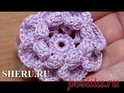 Вязаный цветок Урок 42 Как связать цветок в виде корзиночки - YouTube