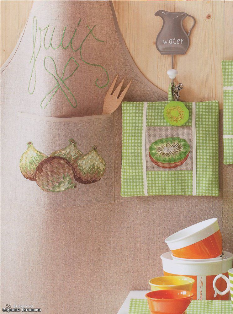 Вышитые фартук, прихватки, полотенца и сумки "Фрукты"