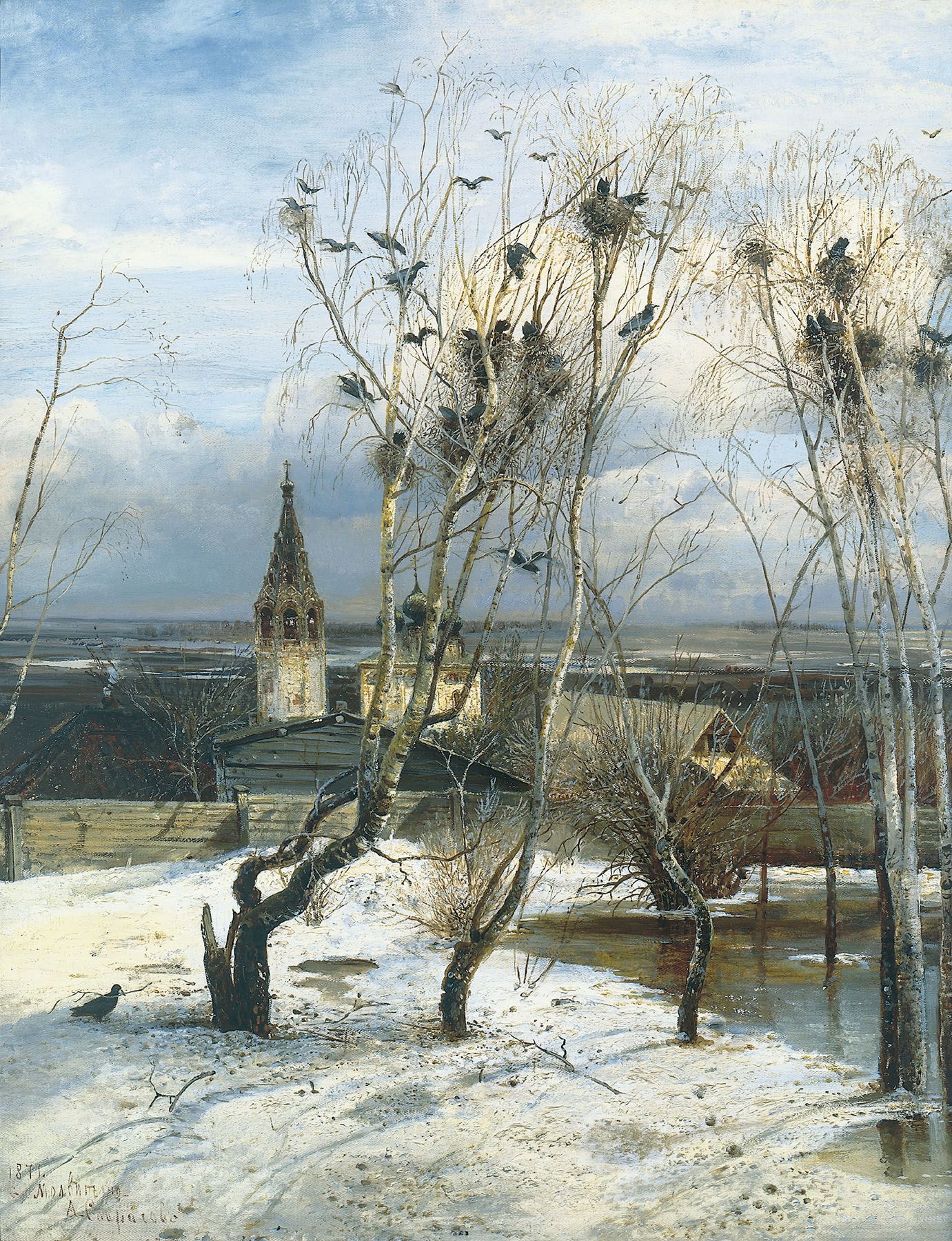 Грачи прилетели « Саврасов Алексей Кондратьевич. 1871 г. « Русская живопись « Музей « Воскресный день