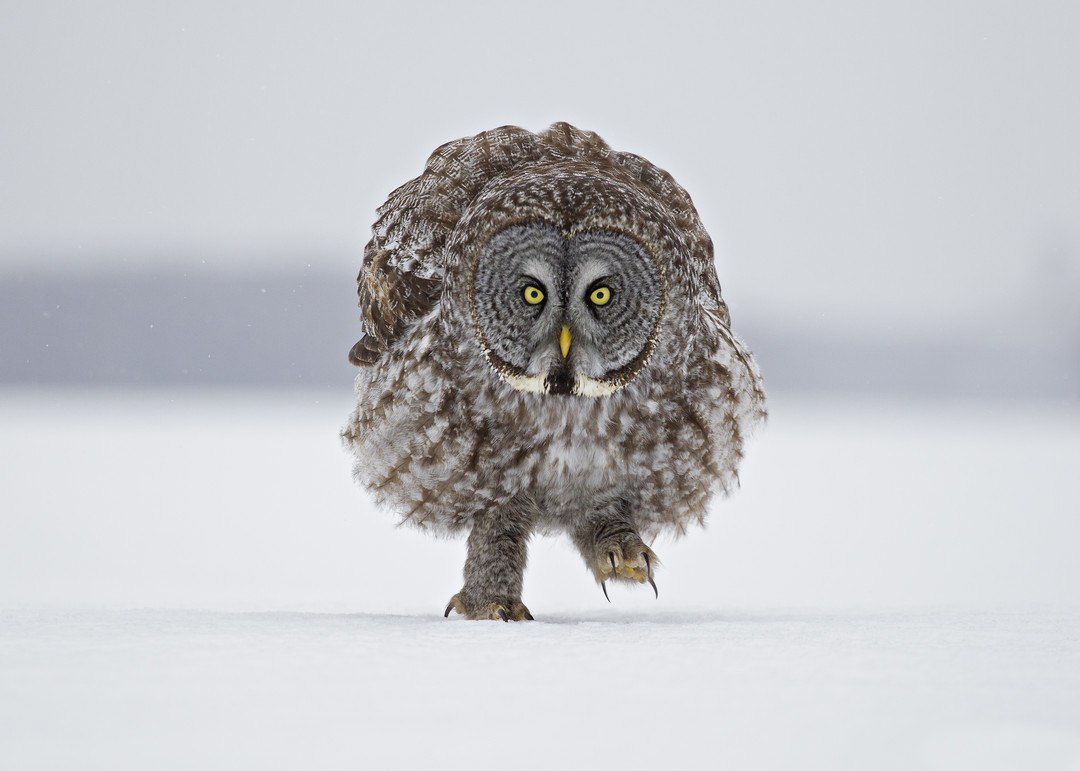 Бегущая сова на замёрзшей реке Отава, Чехия