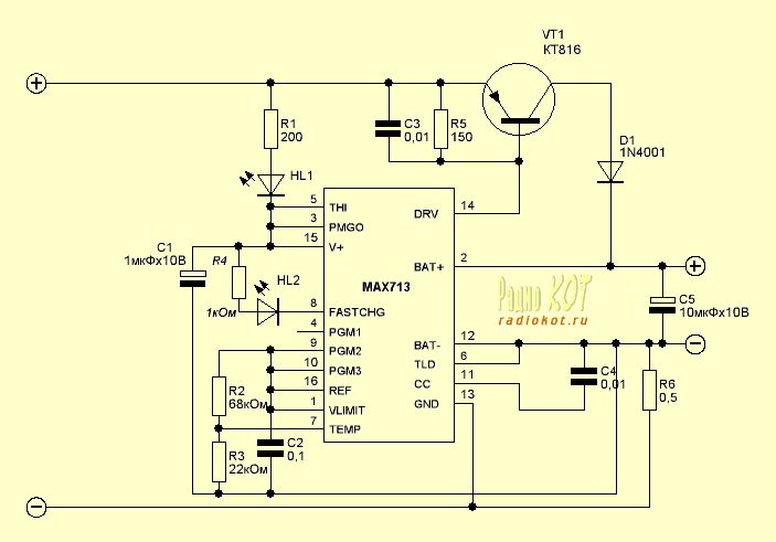 РадиоКот :: Зарядное устройство для Ni-Cd и Ni-MH аккумуляторов. Очень простое