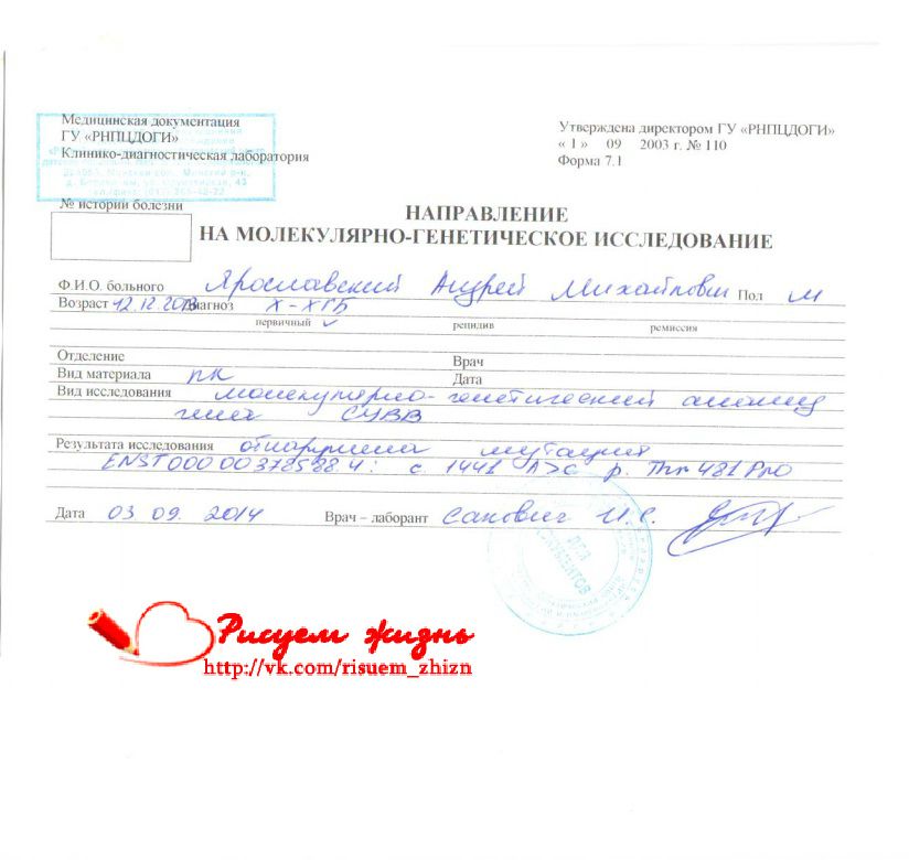Направление на молекулярно - генетическое исследование. Андрюша