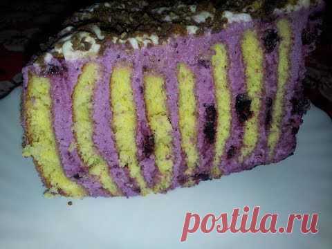 ▶ Торт-рулет . Бисквит с творожно черничным кремом - YouTube