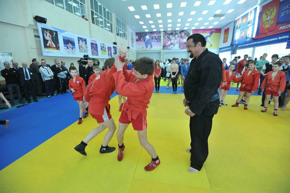 Фото: Стивен Сигал с воспитанниками московской спортивной школы / globallookpress