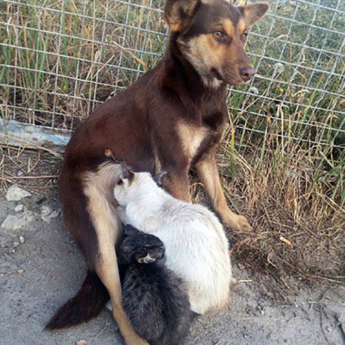 Дворняжка Каштанка «удочерила» кошку Муську и её котёнка | Уши, лапы, хвост