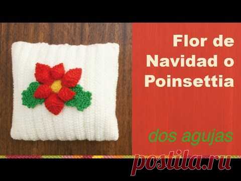 Flor de Navidad o poinsettia tejida en dos agujas o palitos