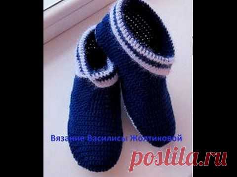 Тапочки крючком. Тапочки-сапожки на войлочной подошве.crochet slippers