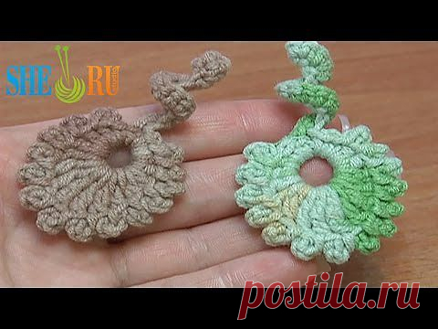 ▶ Листочек связанный крючком Урок 9 С черенком в виде спиральки - YouTube