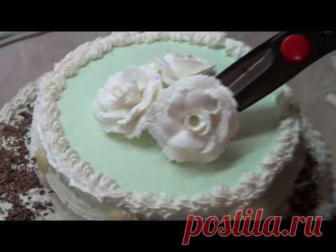 Двоярусный торт украшаем кремом и шоколадом.