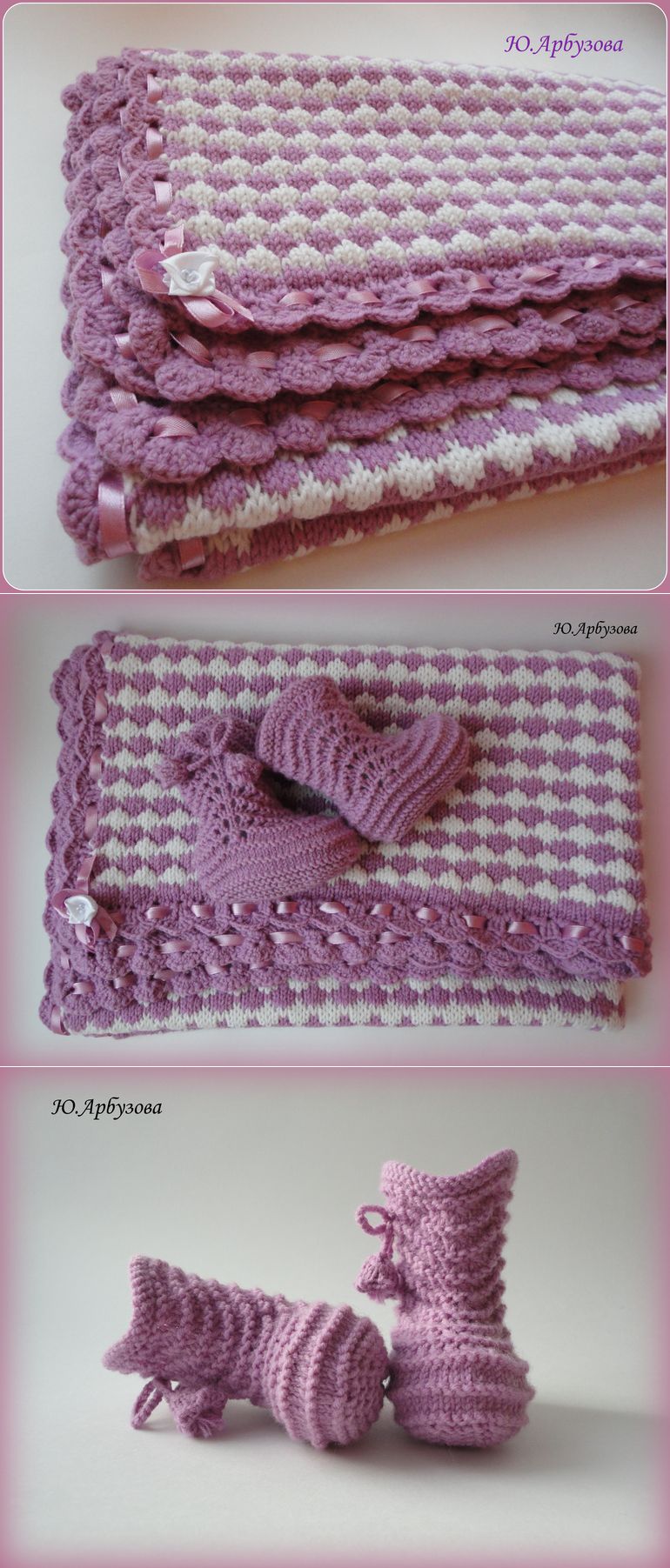 Плед и пинетки для новорожденной.