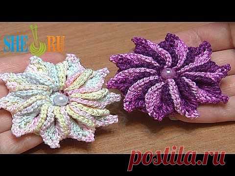 ▶ Вязание цветка Урок 47 Нежный цветочек с десятью лепестками - YouTube