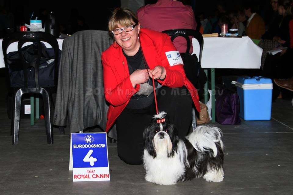 Kortrijk (Belgium) Eurodogshow International Special Tibetan Breeds Show Judge : Mrs Eva De Wine (B) Chesvet Line Nikita For her first time in Young Female Class at 10 months : 4th Exc. (over 7)