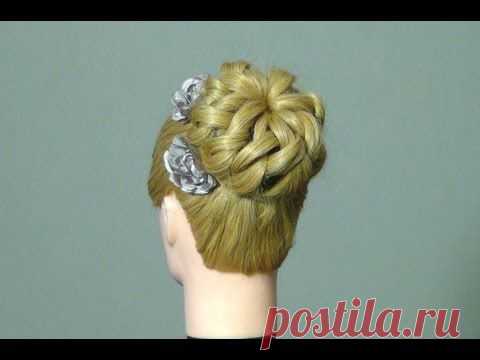Прическа: Пучок с плетением. Elegant wedding bun updo hairstyles tutorial