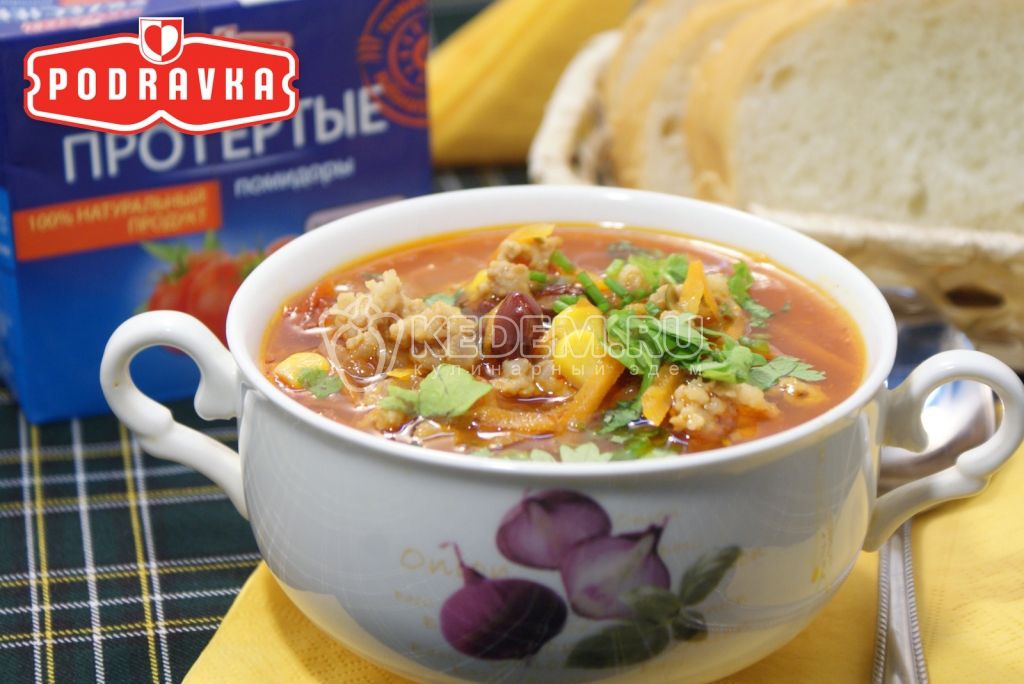 Мексиканский суп с фаршем, перчиками холопенью и мякотью помидоров - Приготовленный рецепт