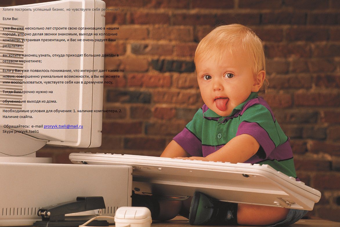 Если у Вас уже появилось понимание, что интернет дает какие-то новые, совершенно уникальные возможности, а Вы не можете ими воспользоваться, чувствуете себя как в дремучем лесу, Тогда Вам срочно нужно на обучение не выходя из дома. Необходимые условия для обучения: 1. наличие компьютера. 2. Наличие скайпа. Обращайтесь: e-mail proryvk.tseli@mail.ru Skype proryvk.tseli1
