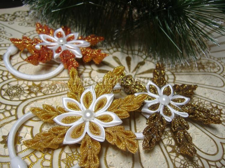 Канзаши. Резинки для волос «Снежинки». Мастер-класс с пошаговыми фото