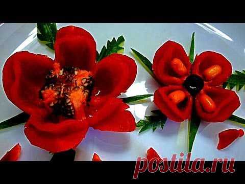 Цветы из перца! Карвинг перца! Flowers of pepper! Carving pepper!