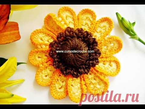 CROCHÊ - FLOR GIRASSOL 1 - YouTube