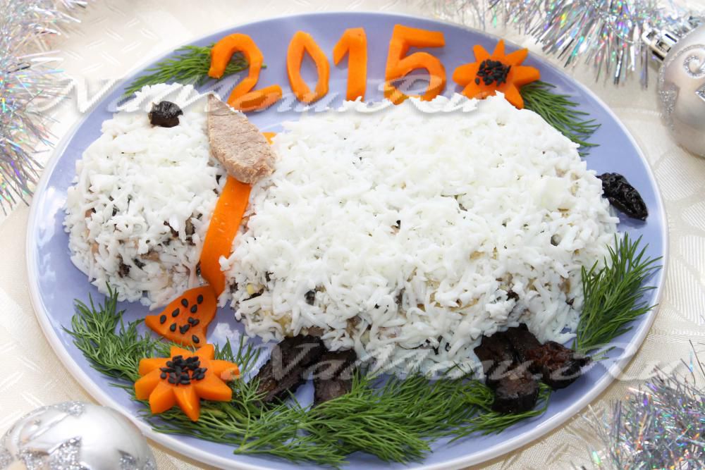 Салат на Новый год 2015 в виде овечки "Веселая овечка"