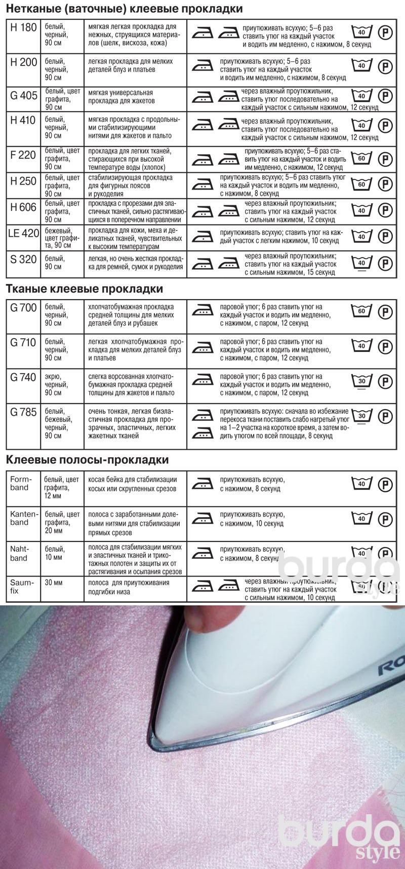 Таблица основных прокладок Vlieseline / Мастер-классы / Burdastyle