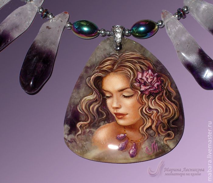 Кулон-колье "Ноктюрн в сиреневых тонах" - тёмно-фиолетовый,сиреневый,серый