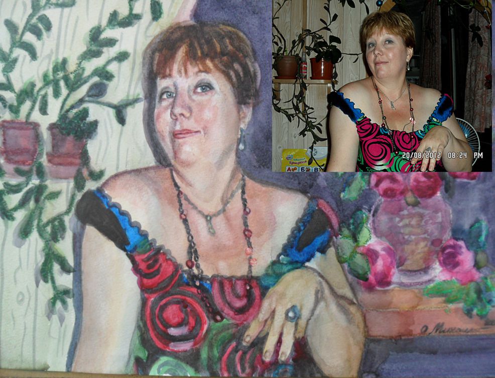 Портрет по фото на заказ, акварель, б, А3