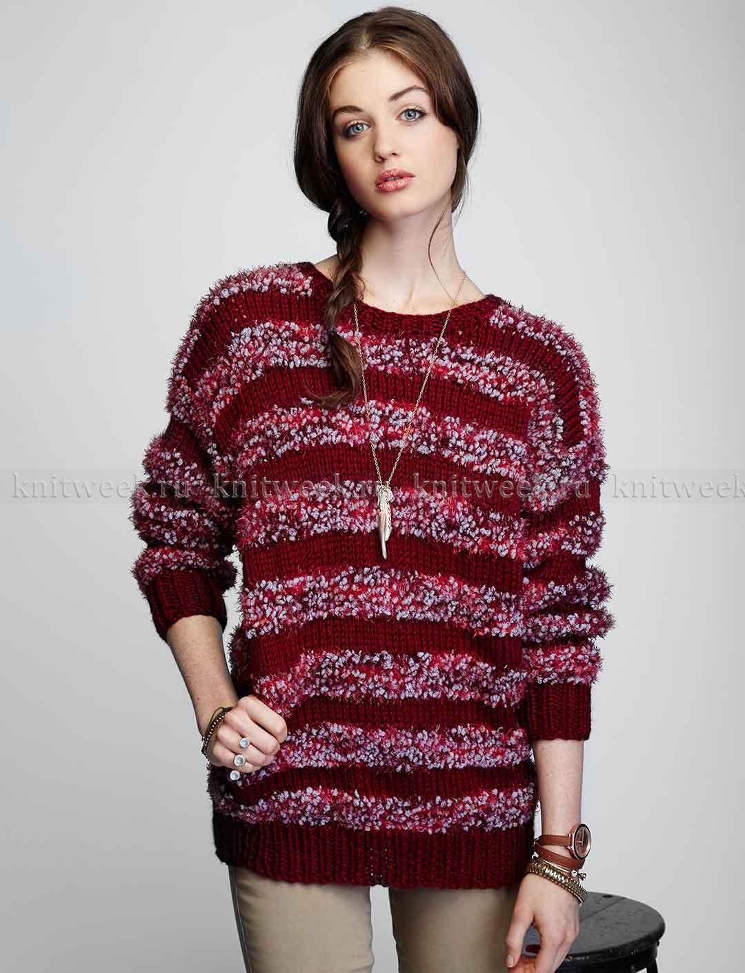 Пуловер спицами с полосами из пряжи букле на knitweek.ru