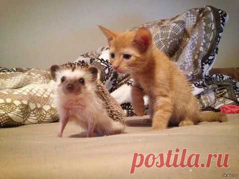 Котенок знакомится с ежиком - YouTube