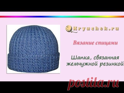 Вязание спицами. Шапка узором жемчужная резинка (Knitting. Hat pattern bubble gum)