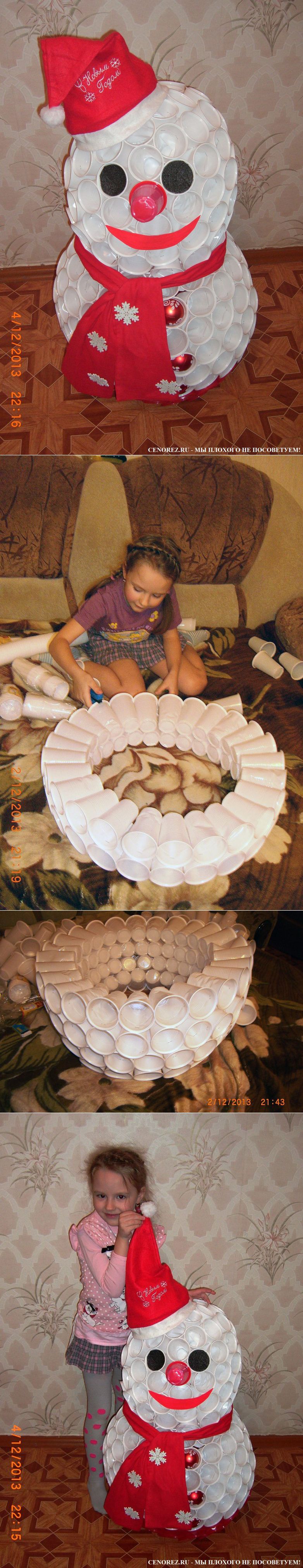 Поделка к Новому году: снеговик из пластиковых стаканчиков / Малютка