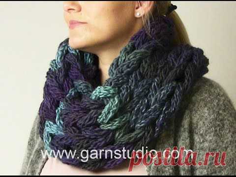 DROPS Knitting Tutorial: How to finger and arm knit a neckwarmer