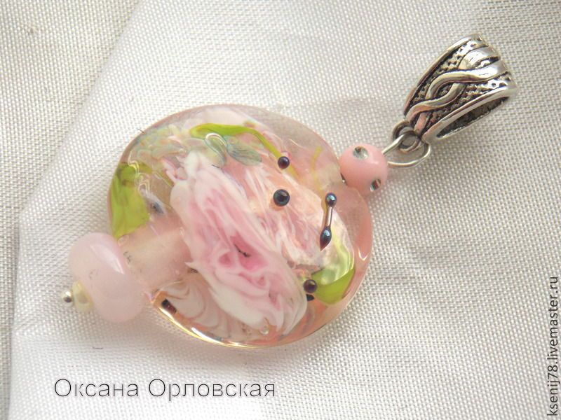Кулон Розовый кварц.ПРОДАНО. - бледно-розовый,кулон,кулон на цепочке,кулон из стекла