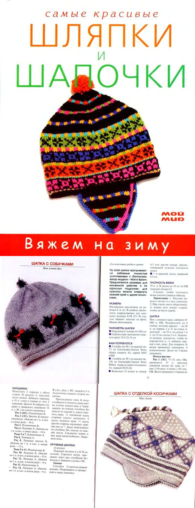 Шапки спицами для детей и взрослых.
