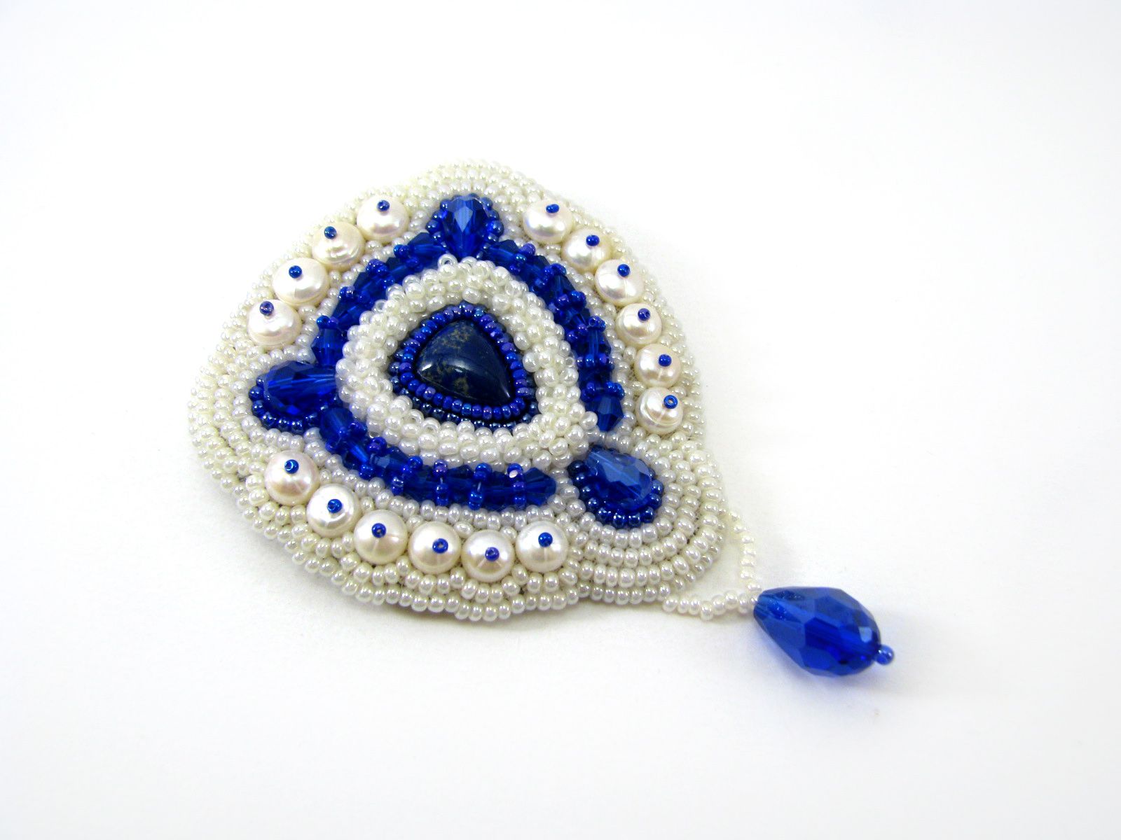 Брошь с лазуритом и жемчугом | biser.info - всё о бисере и бисерном творчестве